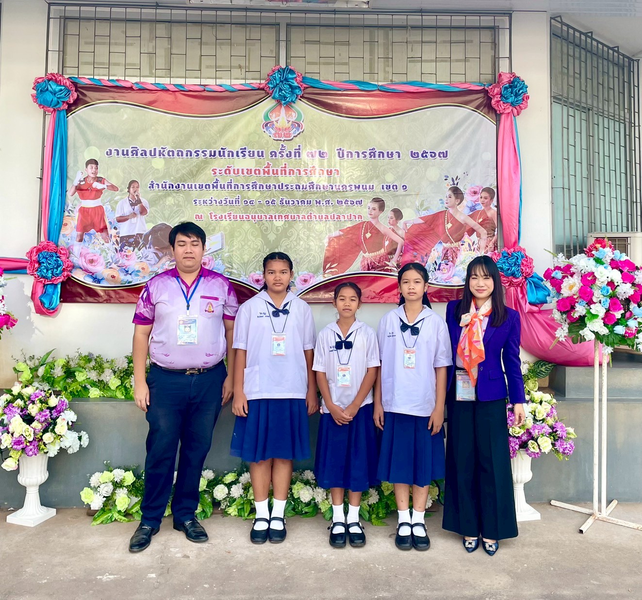 รางวัลระดับเหรียญเงิน กิจกรรม การแข่งขันการประดิษฐ์งานใบตอง ประเภทบายศรีปากชาม ระดับชั้น ป.1-6