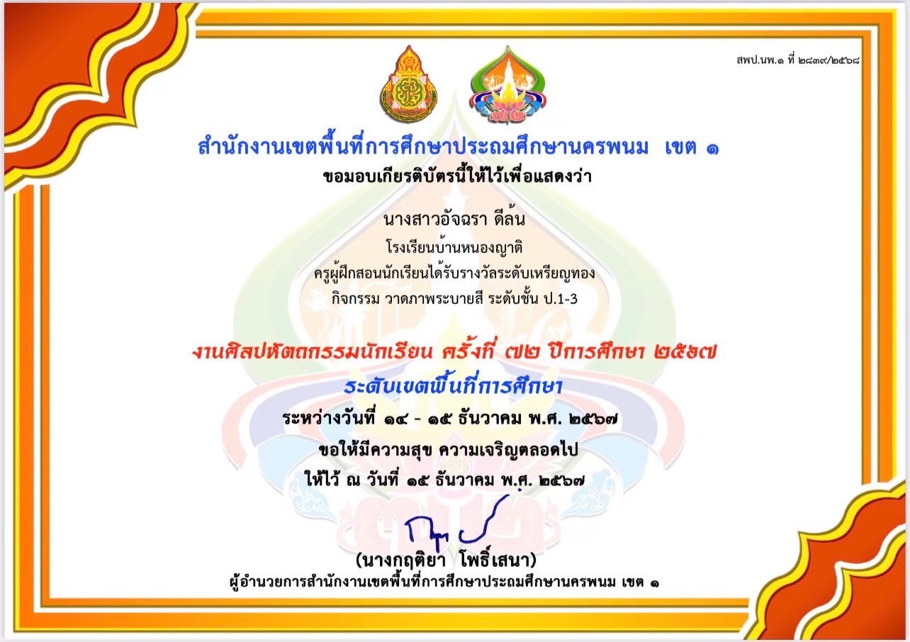 รางวัลเหรียญทอง กิจกรรมวาดภาพระบายสี ระดับชั้นประ 1-3