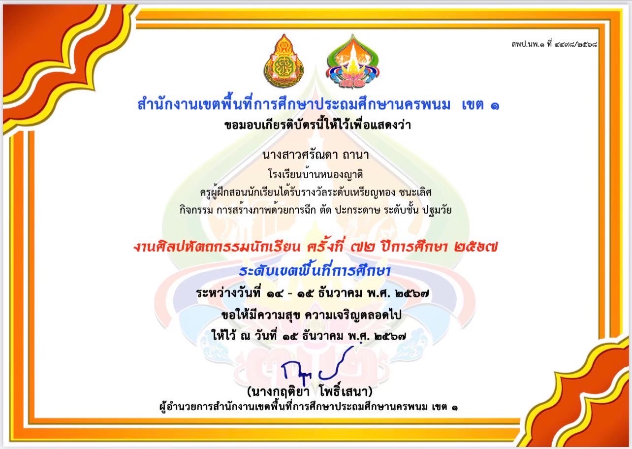 รางวัลระดับเหรียญเงิน กิจกรรม การแข่งขันการประดิษฐ์งานใบตอง ประเภทบายศรีปากชาม ระดับชั้น ป.1-6